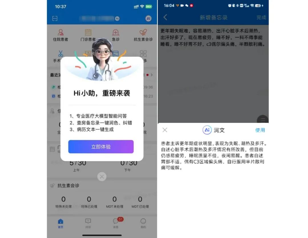 首先,它是一支解放双手的“神笔”。无论是医患对话,还是查房时的口述记录,它都能迅速变成规整的病历文书。它还像个内置的质控老师,在你书写时就悄悄帮你检查逻辑和规范,避免了事后修改的麻烦。